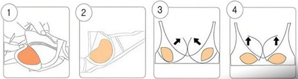 - Place the inserts inside of the garment with the face down and the deeper part facing you.